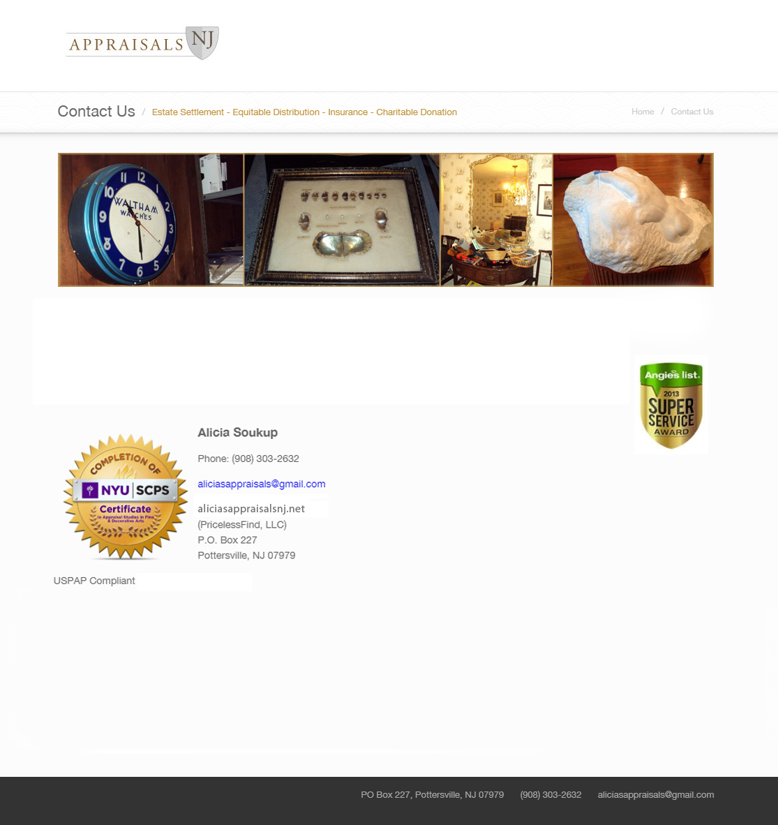 When you are ready to begin the appraisal process, call us. We will come and do a walk through. Appraisalsnj.net (PricelessFind, LLC) has excellent references. We are Attorney and Realtor recommended. To arrange an on site consultation, Call us at: (908) 303-2632